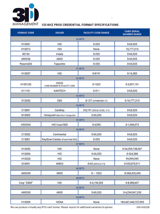 • CARD IDENTIFICATION - No additional charge for printing serial numbers or facility codes
