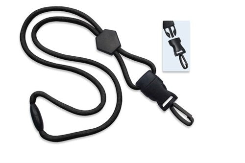 • Round lanyard with breakaway, diamond slider, and DTACH plastic swivel snap hook.