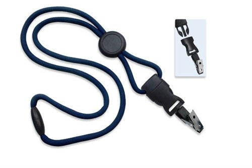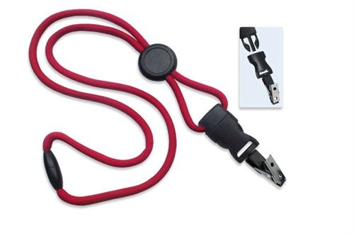1/4" (6 MM) Round Lanyard with Breakaway, Round Slider and DTACH Bulldog Clip, Qty = 100