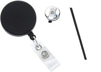 Black and Chrome Metal Case Badge Reel with Nylon Cord and Reinforced Vinyl Strap, Qty = 25