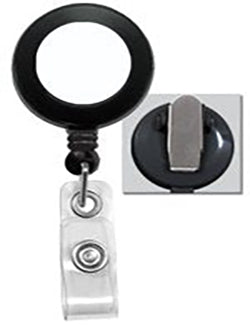 Black Badge Reel with White Sticker Clear Vinyl Strap and Spring Clip, Qty = 25