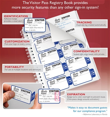 The new Expiring Visitor Badge Sign-in Book is an easy-to-use sign-in system that keeps a record of visitors with the added security of a self-expiring name badge. Visitor information is recorded. As the Visitor, Receptionist, or Security Person fills out the badge, a duplicate record is being recorded at the same time. This provides the facility with a permanent record of their visitors for future reference. Sign-in information is not visible to other visitors. This allows the Visitor's information to be protected from review by the public (and future visitors). Self-expiring visitor badges. The self-expiring badge displays a red-colored "VOID" once a visitor has been on site for the allotted time, providing a layer of visual security. The color change also prevents tampering and reuse of the visitor badge, so there is no need to collect used badges. Low cost and easy-to-use.