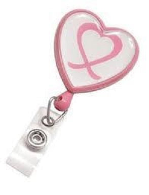 Heart Shaped Badge Reel with Domed Breast Cancer Awareness Label, Qty = 25