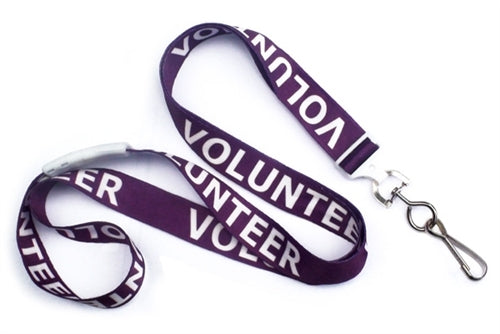 Purple Pre-Printed "Volunteer" 5/8" (16 MM) Flat Breakaway Lanyard with Swivel Hook, 2138-5230, Qty = 100
