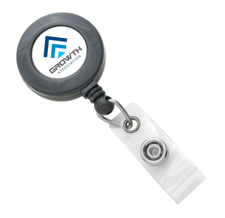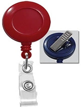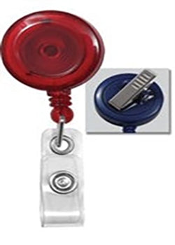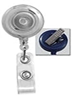 Round Badge Reel with Clear Vinyl Strap and Swivel Spring Clip, Qty = 25