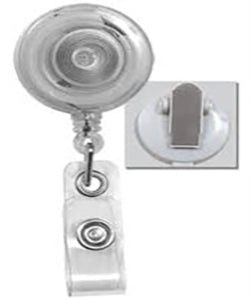 Round Economy Badge Reel with Clear Vinyl Strap and Spring Clip, Qty = 25