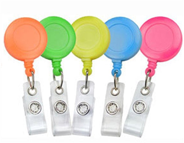 Round Neon Badge Reel with Clear Vinyl Strap and Belt Clip, Qty = 25