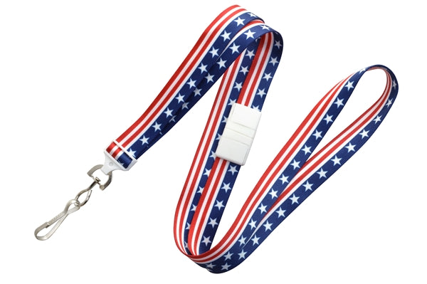 Stars and Stripes 5/8" (16 MM) Flat Breakaway Lanyard with Swivel Hook, Qty = 100